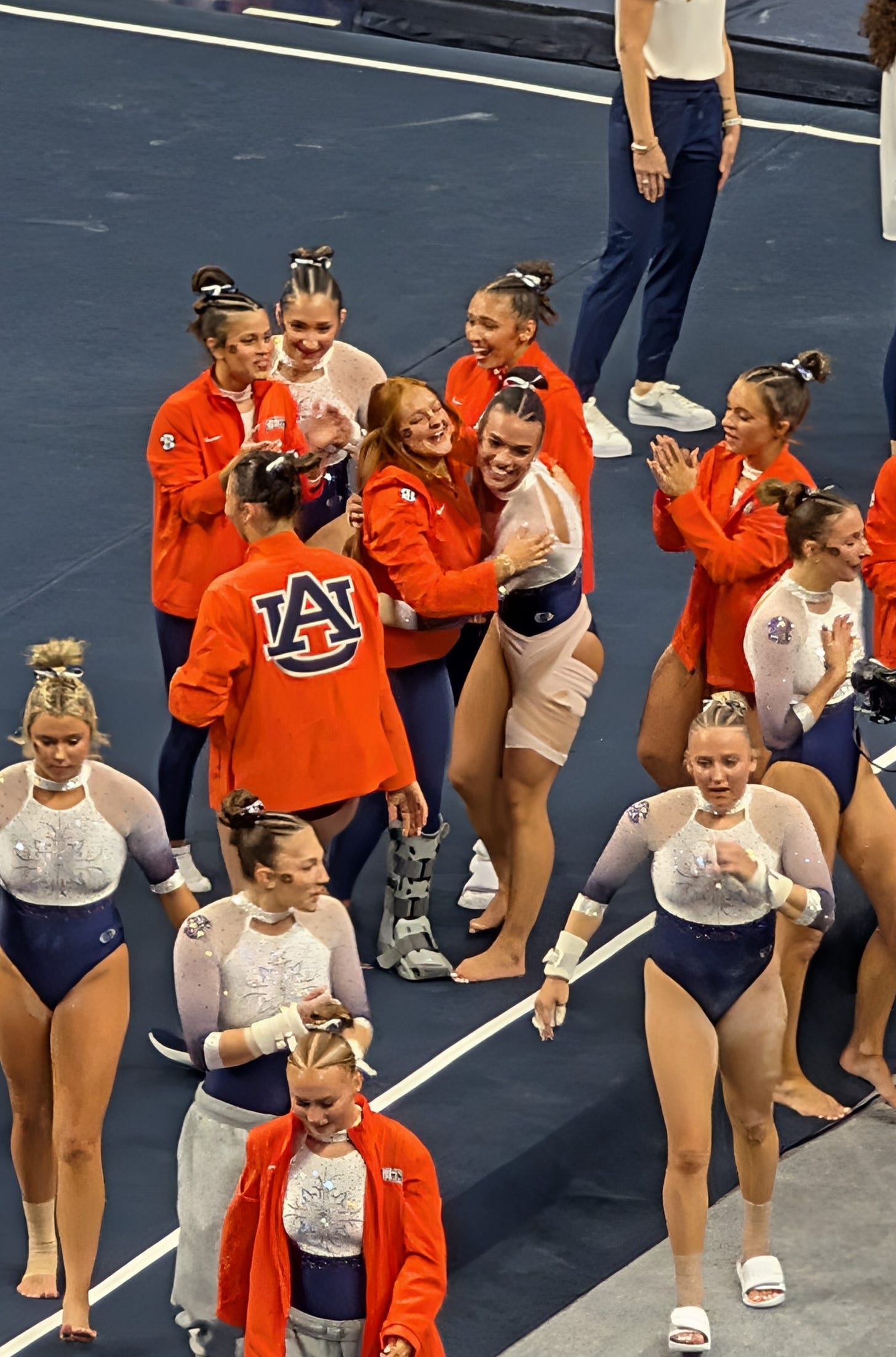 “This is the most ‘gymnastics’ thing I’ve ever seen,” joked a commenter on Instagram, thinking of how gymnasts often fight through injury in the brutal sport, and looking at the wrapping on Zancan’s leg, which covered most of her thigh, and almost looked like a cast covering an injury that’d surely keep her from competing. In actuality, Auburn head coach Jeff Graba said after the meet that it’s a tweak she’s working through on her inner thigh, which flares up when she spreads her leg outward. Her vault has an uncommon front handspring entry and is a front pike — sending all her motion front to back, instead of side to side, which allows her to still go for it.