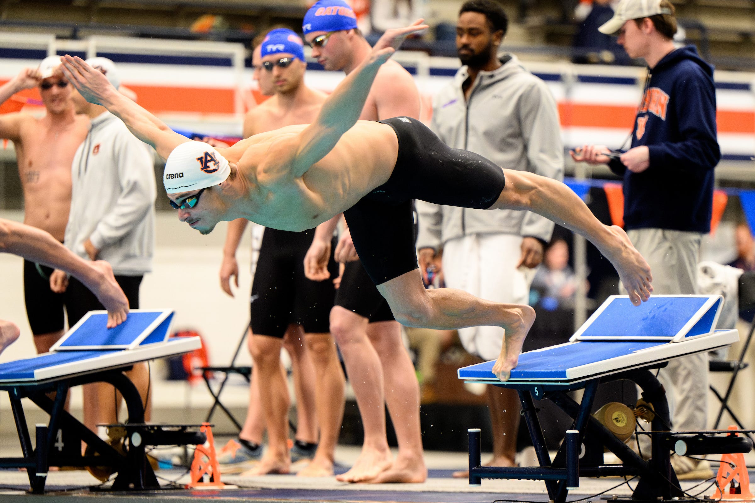 He won the 200 free in 1:33.10 at Auburn’s dual with Florida on Jan. 16. He currently holds the nation’s 12th-best time in the 200 free, with a personal best this season of 1:32.18 — with every college swimmer’s goal ultimately being to make it into the top eight at the end and be in the championship final at the NCAA Championships in March.