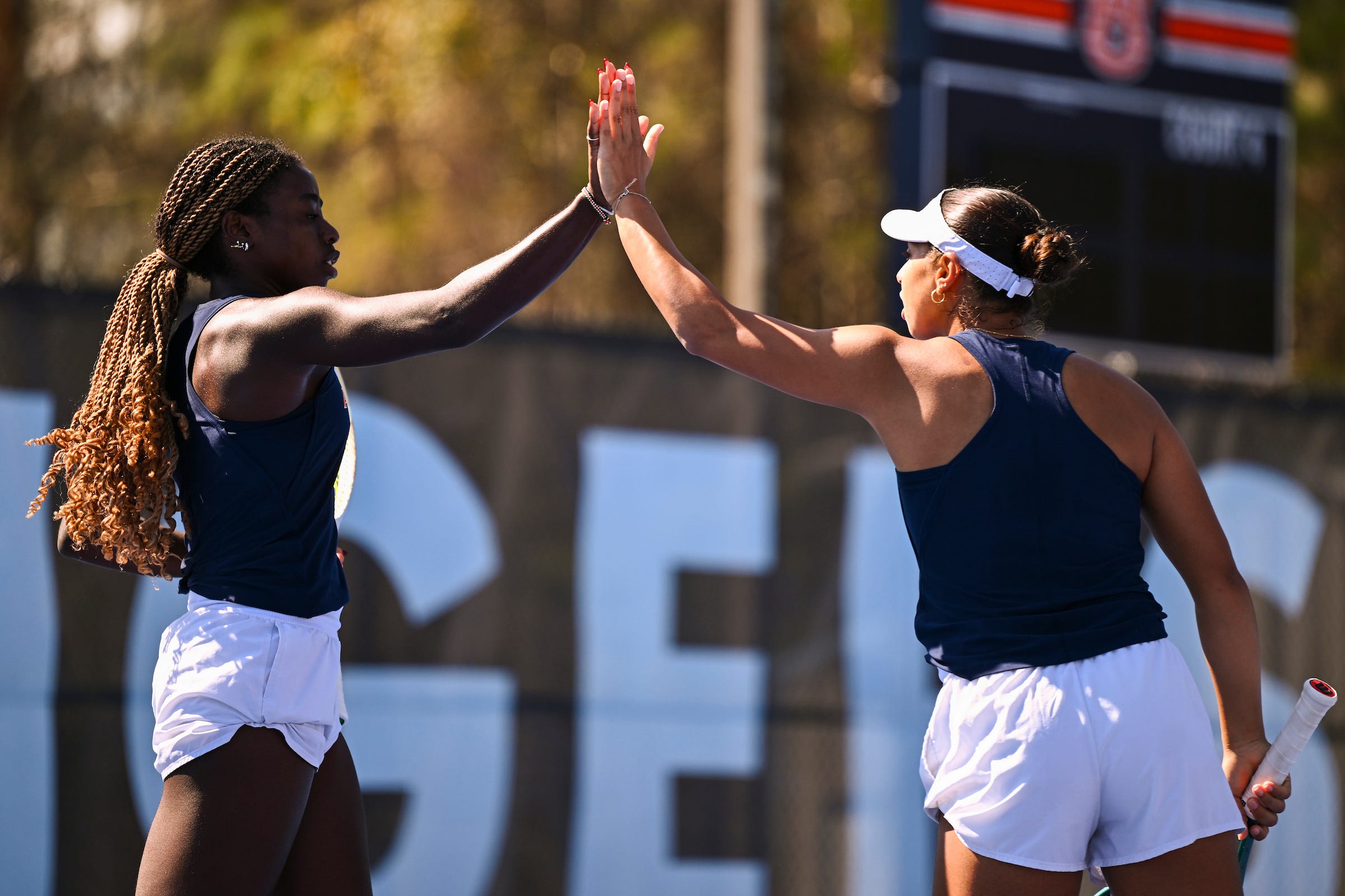 Auburn’s outstanding doubles group won the doubles point yet again — for a perfect fifth time in five conference matches — but the Tigers found themselves in battles on the singles courts, dropping four first sets. DJ Bennett, Ekaterina Kharyutdinova, Angella Okutoyi and Ava Esposito all found themselves down a set.