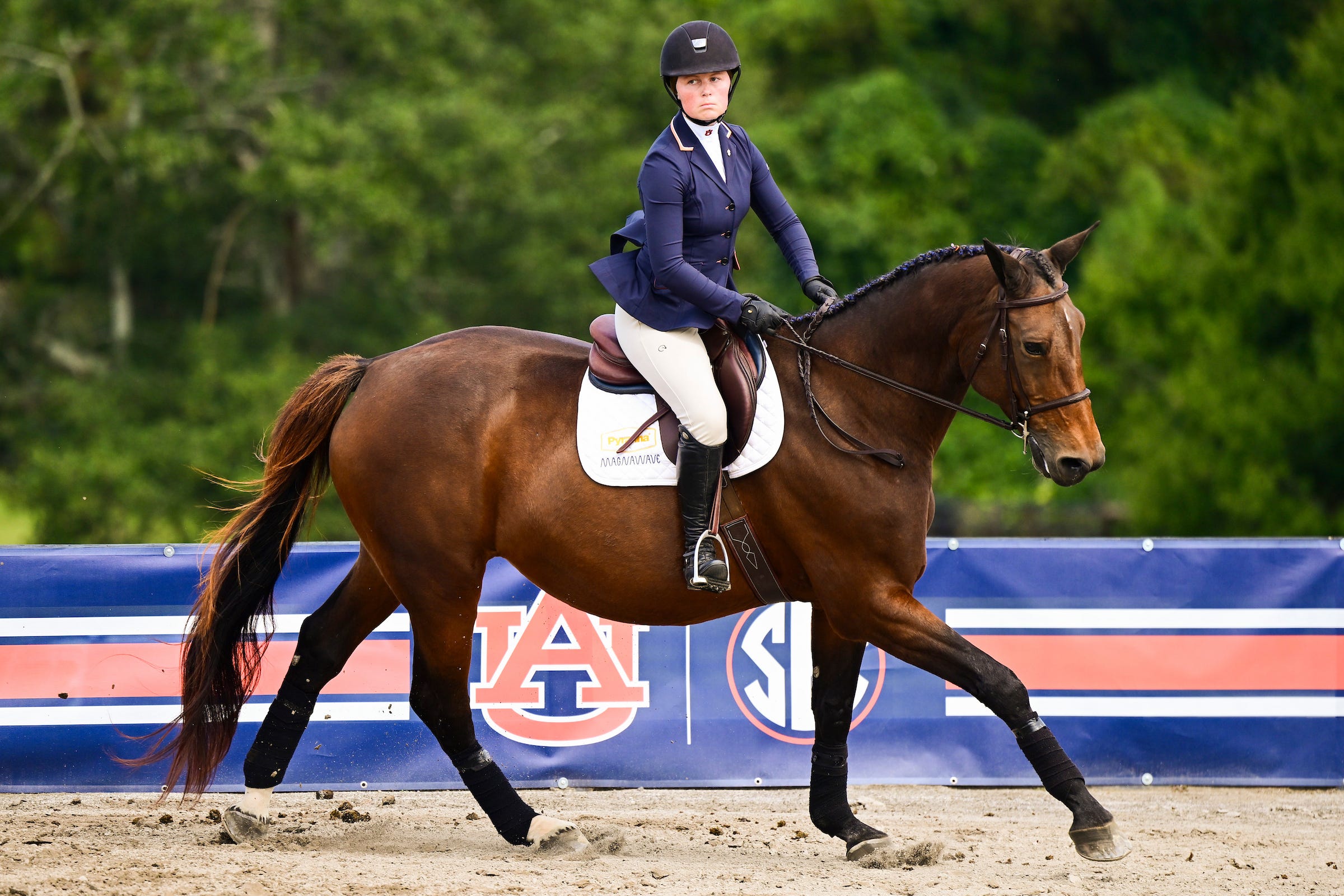 After a fall during her ride over Fences on Thursday in the national quarterfinals, Auburn’s freshman later responded with a win on the Flat — scoring a point-winning 82, which was part of a 5-0 sweep for Auburn on the Flat, and part of a furious rally for the Tigers to punch their ticket to the national semifinals.